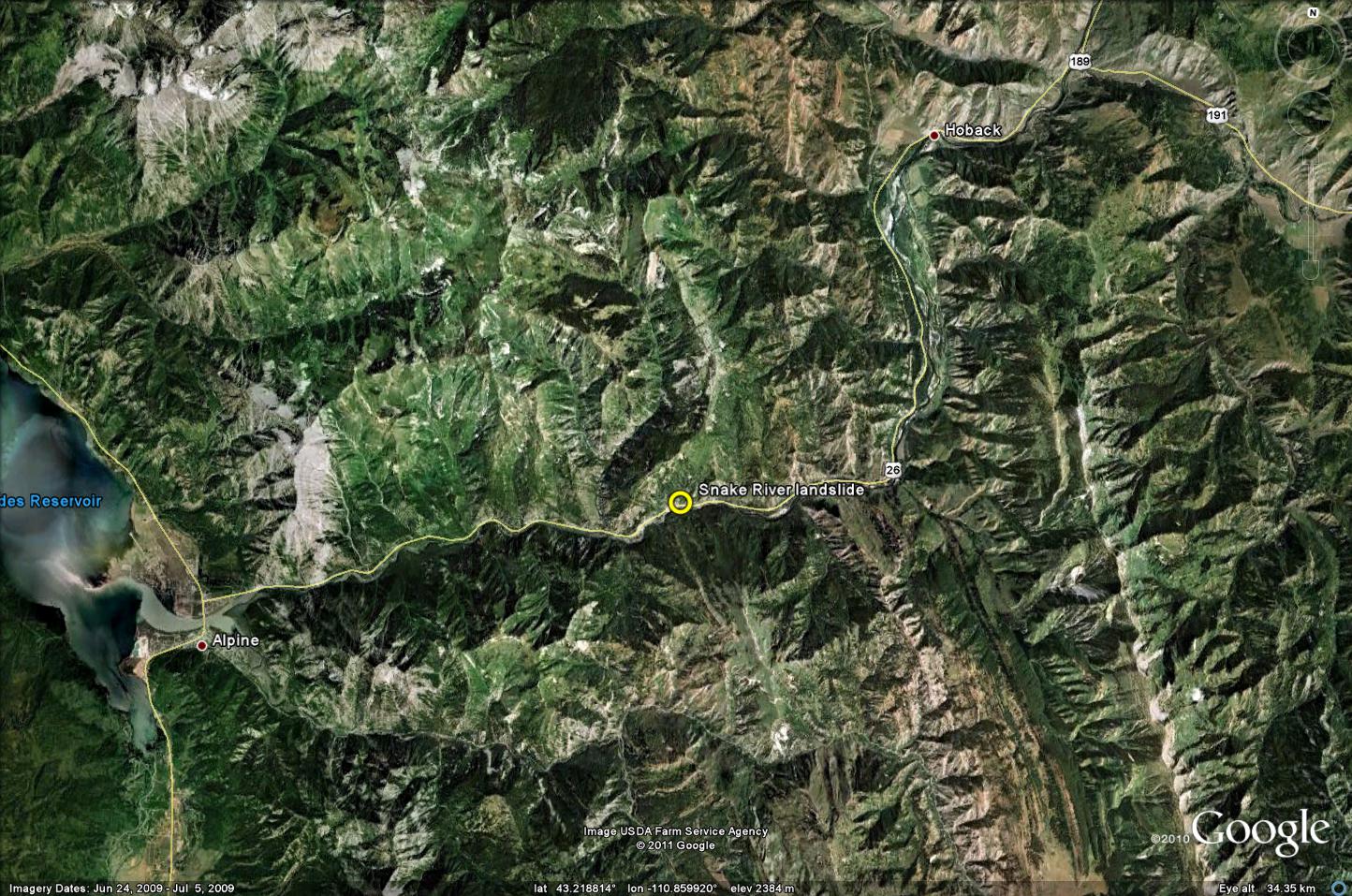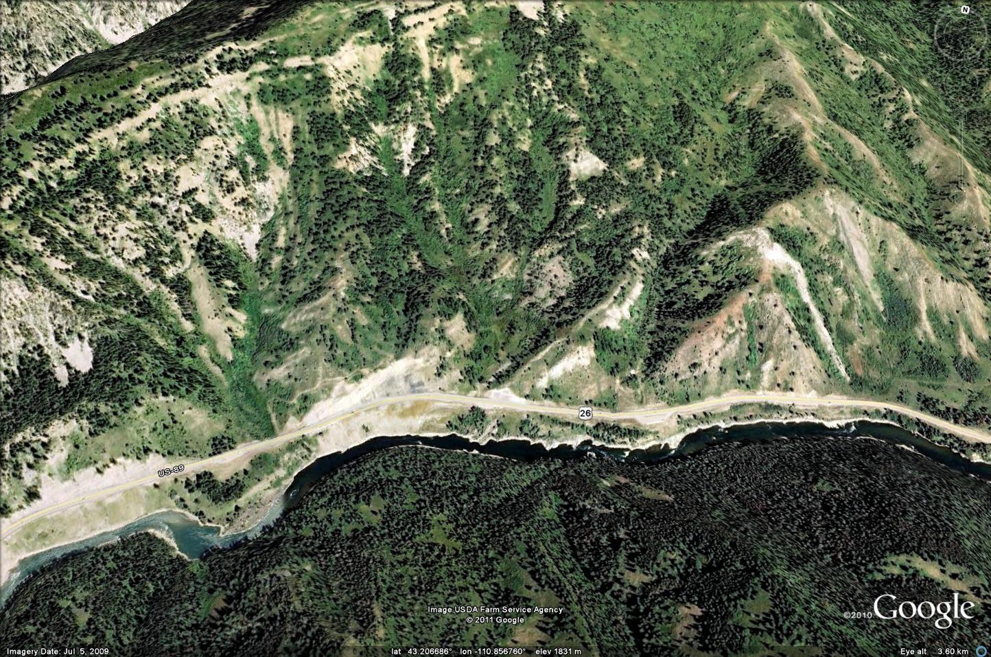 Jackson Hole is one of my faorite places so I have been in the Canyon many times, annualyl for the last 15 or so years. It appears the slide is several hundred yards up stream from a corner that gave the highway deaprtement fiits from the first time I went though there and hammered on rocks at that corner in class one day. The last construction seems to be holding, for now. With time that fix may not last forever because of the very local nature of the attitude of the rocks in that area,