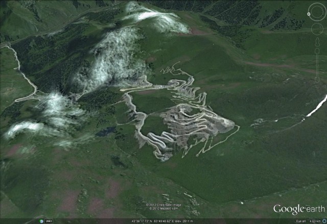 According to the Geonames search engine, Araltobe is at 43.4 N, 83.7 E. The only obvious quarry that I can find in the Google Earth imagery of this area is this one: