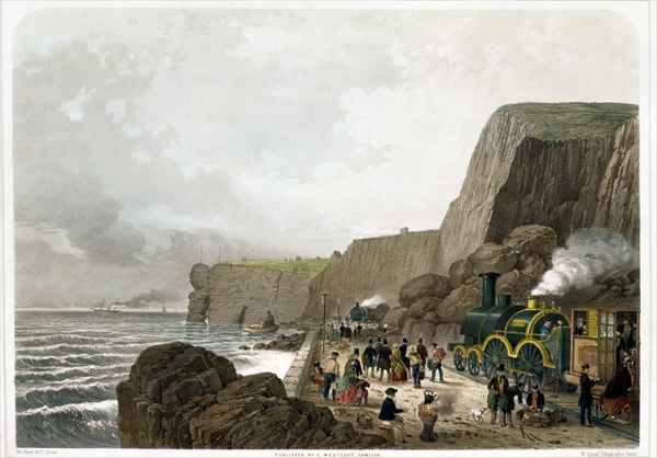 The image, for which I do not have the author, is entitled “South Devon Railway: Landslip near the Parson and Clerk Rock, Dec. 29th 1852”. The image appears to show a significant landslide on a coastal cliff in South Devon on the UK. The failure appears to consist primarily of large boulders, and the form of the scarp suggests perhaps a collapse defined by an existing defect, such as a sub-vertical joint.